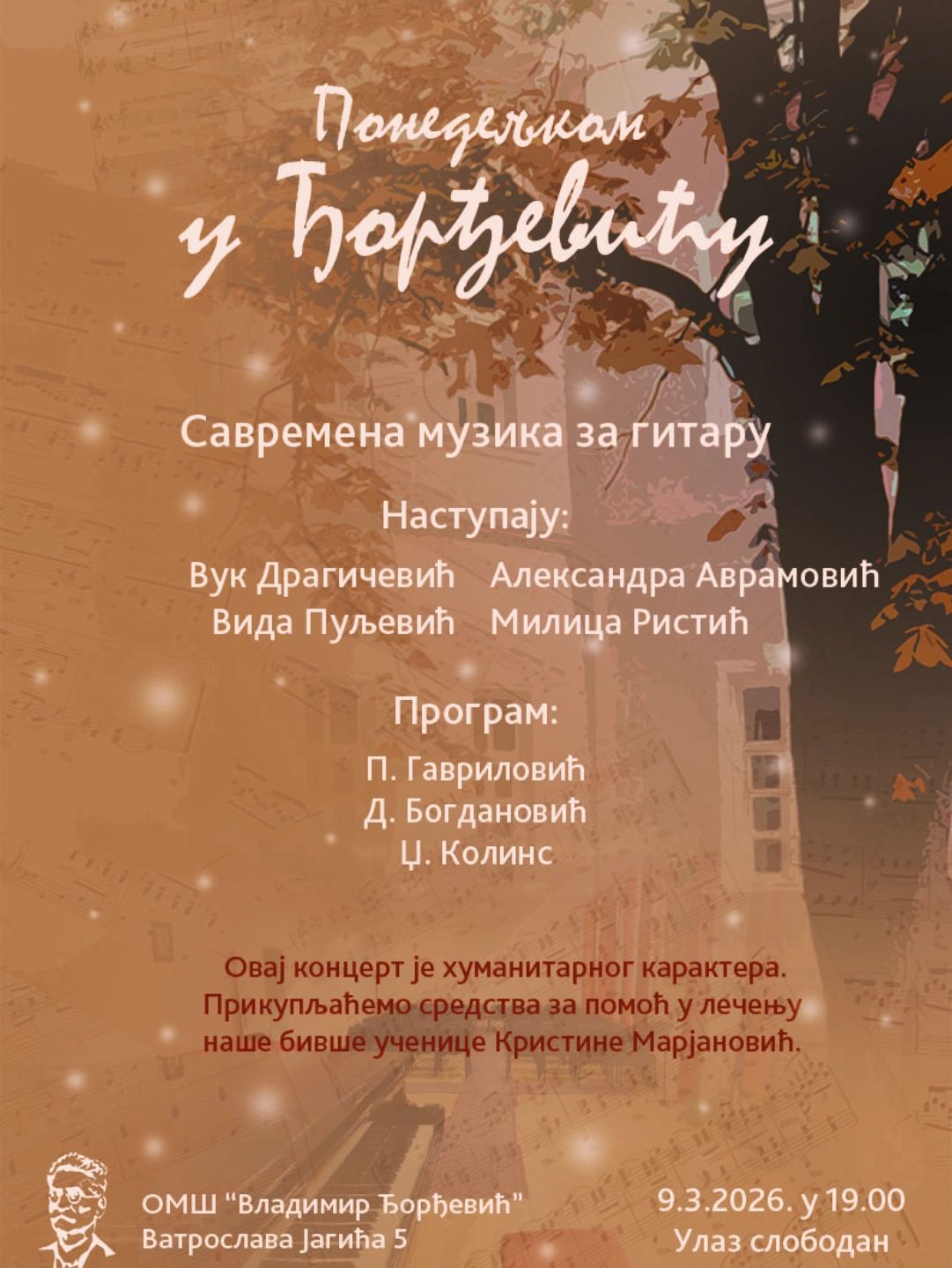 09.03.2026. – „Понедељком у Ђорђевићу“ – Хуманитарни концерт савремене музике за гитару