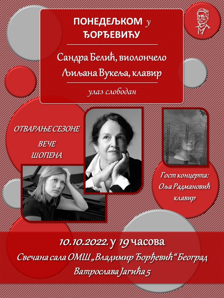 10.10.2022.- „Понедељком у Ђорђевићу“ – Сандра Белић, виолончело и Љиљана Вукеља, клавир