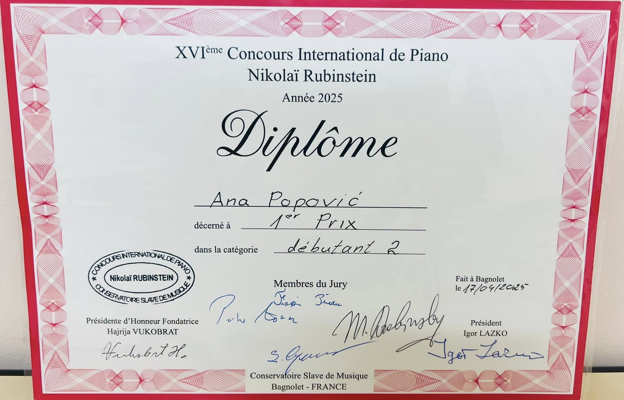 13-20.04.2025. – XVI Међународно клавирско такмичење „Николај Рубинштајн“ Париз (Француска)