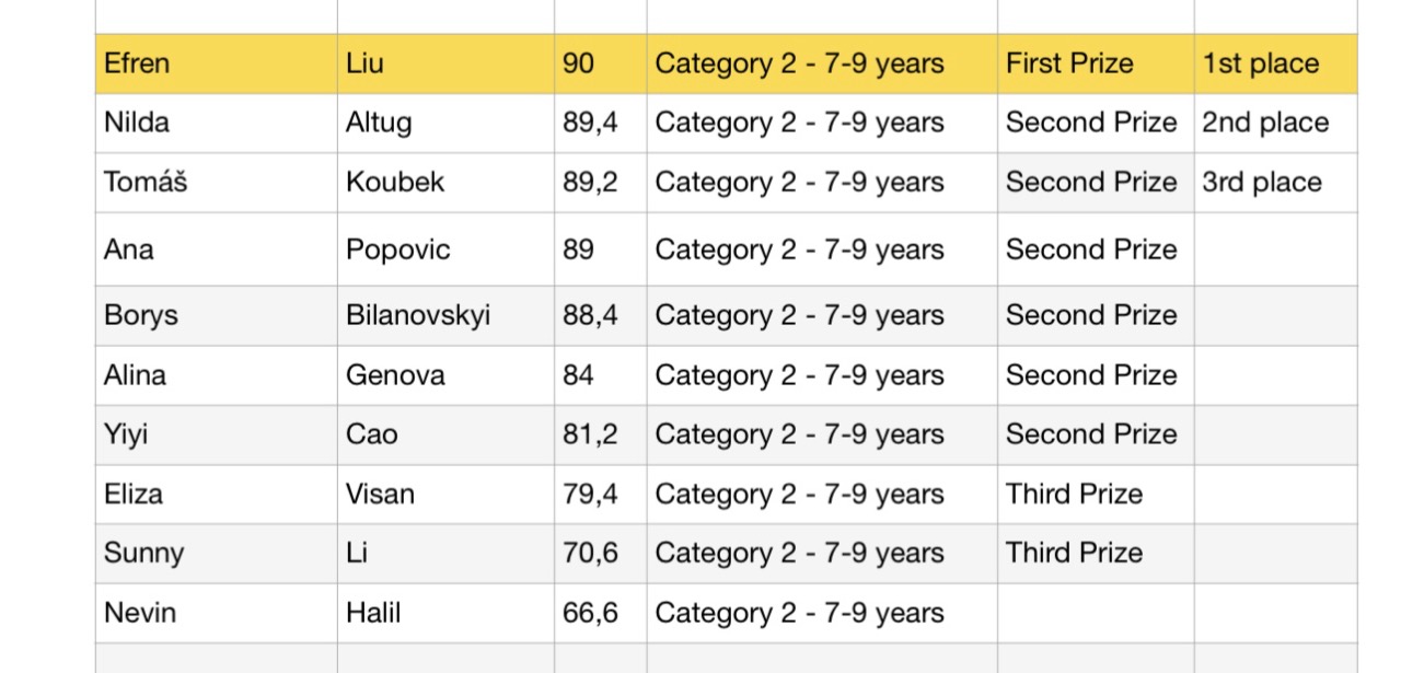 Прва етапа овог такмичења одржана је почетком 2024. године, а у другу етапу – финале (Категорија 2, 7-9 година) пласирало се укупно 10 такмичара, међу којима је била и Ана. Финално такмичење је одржано 20.07.2024. у „Ehrbar“ сали у Бечу.