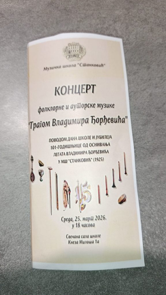 25.03.2026. – Концерт фолклорне и ауторске музике „Трагом Владимира Ђорђевића“ у МШ „Станковић“