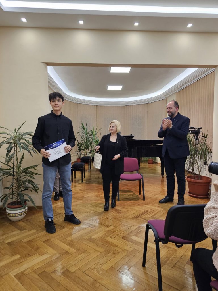На Завршном концерту лауреата 12. Регионалног такмичења ученика музичких школа „Бинички“ 23.03.2024. наступио је ученик наше школе, Тодор Аничић, VI разред, класа: Ненад Анчић. Изузетно смо поносни што је Тодор, као Лауреат за целокупну дисциплину клавира, уједно и први добитник посебног признања, које носи име Андрије Чикића.