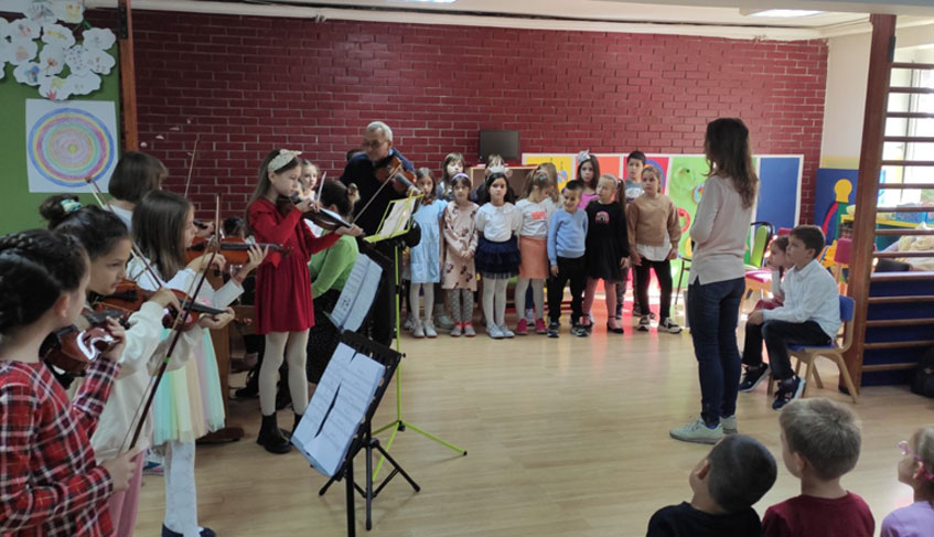 Концерт су отворила два камерна састава: Квинтет – Дариа Ђорђевић, II разред виолине, класа: Ј. Гацин, Петра Јовановић, Ђурђа Костић, Андреа Петронијевић и Олга Станковић, II разред виолончела, класа: Р. Кнежевић и Трио „Виваче“ – Даница Вукелић, IV разред виолине, класа: Ј. Гацин; Кристина Ђорђевић, IV разред виолине, класа: М. Босанац и Нина Петровић, V разред клавира, класа: Е. Миодраг. Након камерних састава, наступили су солисти: Јелена Величковић, I разред виолине, класа: К. Милетић; Александра Тешић и Филип Трипић, II разред и Ксенија Крстић, III разред виолине, класа: Ј. Рајић; Емилија Ћирић, II разред и Даница Вукелић, IV разред виолине, класа: Ј. Гацин; Кристина Ђорђевић, IV разред виолине, класа: М. Босанац; Вида Лазовић, IV разред виолине, класа: С. Лазаревић; Тара Субашић, V разред виолине, класа: Л. Кованџић; Василије Крстић, V разред виоле, класа: Ј. Вукотић; Ангелина Рајић, II разред контрабаса, класа: М. Ранчић. Клавирски сарадници: Аница Чокић-Петровић, Марија Родић и Маја Илић. За крај концерта, наступио је Гудачки оркестар наше школе са диригентом Јеленом Вукотић.